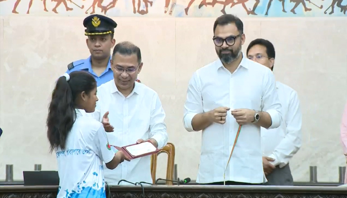 ‘আমরা সেই চ্যালেঞ্জ গ্রহণ করেছি এবং ঘোষণা করেছি যে, আমরা আমাদের নিজস্ব অর্থায়নে এটি করব। আমরা নিজস্ব অর্থায়নে পদ্মা সেতু নির্মাণ করেছি। আমরা কারও কাছ থেকে টাকা নিইনি, আমরা সেই যোগ্যতা অর্জন করেছি,’ যোগ করেন তিনি।