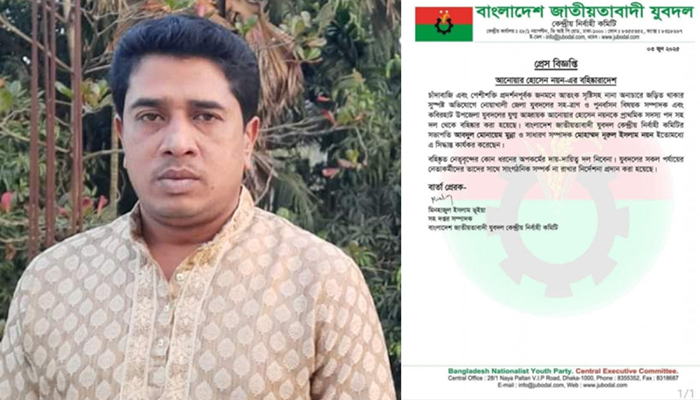 চাঁদাবাজি ও পেশিশক্তি প্রদর্শনের দায়ে যুবদল নেতা নয়নকে বহিষ্কার