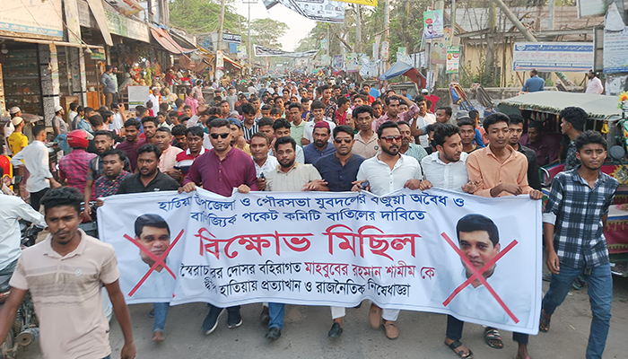 হাতিয়াতে বিএনপি নেতা শামীমকে প্রত্যাখানের ঘোষণা, কমিটি বাতিলের দাবিতে বিক্ষোভ