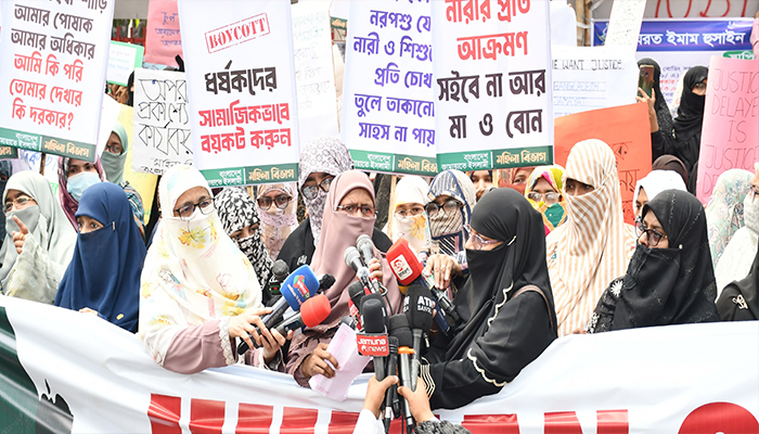ধর্ষণ থেকে মুক্তি পেতে ৫ দাবিতে জামায়াতের মহিলা বিভাগের মানববন্ধন