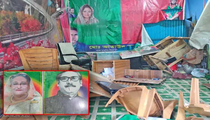 সিংগাইরে আ.লীগ অফিস ও প্রধানমন্ত্রীর ছবি ভাংচুর, মামলা হলেও গ্রেফতার নেই