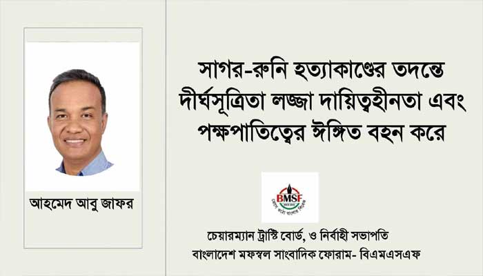 সাগর-রুনি হত্যাকাণ্ডের তদন্তে দীর্ঘসূত্রিতা লজ্জা দায়িত্বহীনতা এবং পক্ষপাতিত্বের ঈঙ্গিত বহন করে