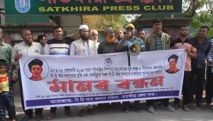 চাকরিচ্যুত বিডিআর সদস্যদের চাকরিতে পুনর্বহালের দাবিতে সাতক্ষীরায় মানববন্ধন