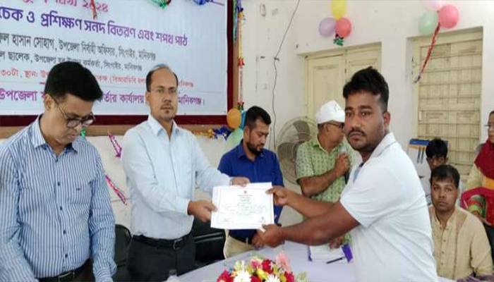 সিংগাইরে যুব দিবস উপলক্ষে ঋণের চেক ও প্রশিক্ষণ সনদ বিতরণ