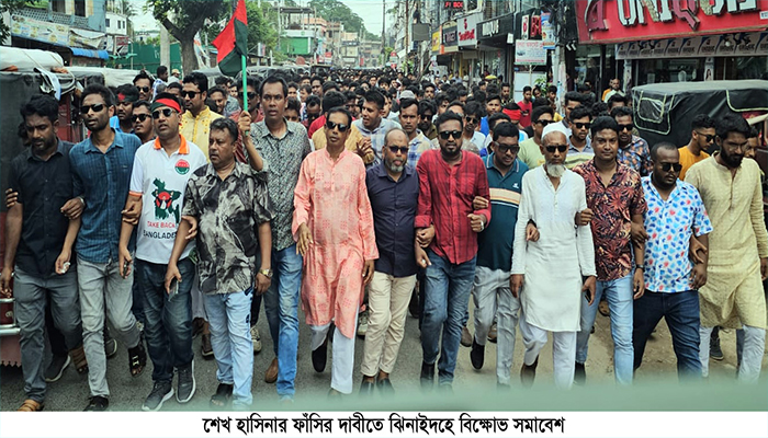 শেখ হাসিনার ফাঁসির দাবীতে ঝিনাইদহে ছাত্র-জনতার বিক্ষোভ সমাবেশ